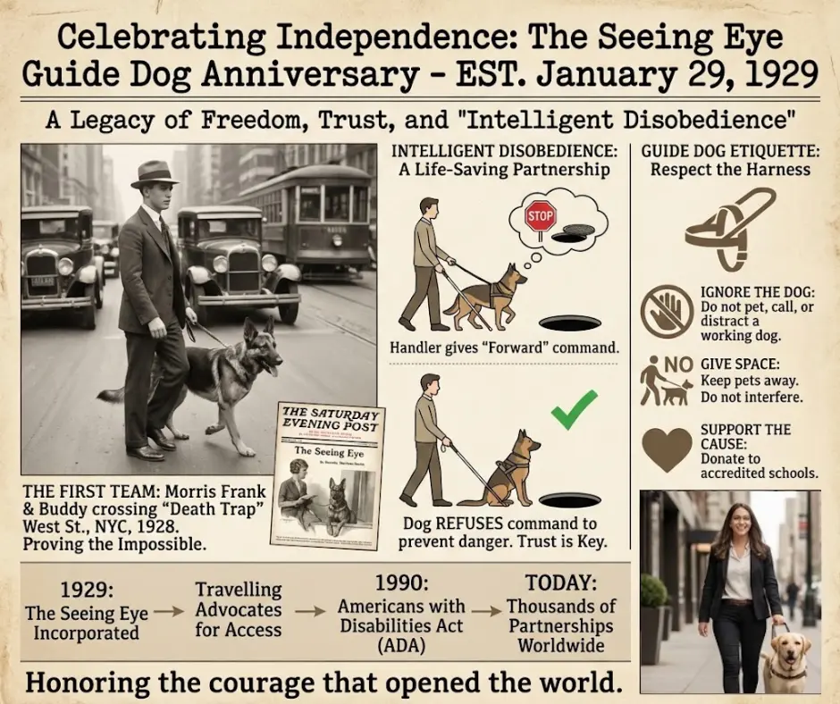 Every year on January 29, we celebrate the Seeing Eye Guide Dog Anniversary, a date that marks a pivotal moment in the history of accessibility and independence. It was on this day in 1929 that The Seeing Eye, the first guide dog school in the United States, was officially incorporated in Nashville, Tennessee.